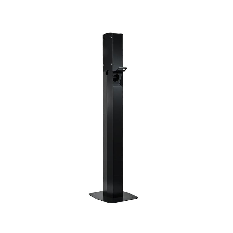 Mit dem EVBox Standfuß kann eine Elvi Ladestation freistehend montiert werden. Durch den seitlich angebrachten Kabelhalter mit Steckereinschub kann das Ladekabel sauber verstaut werden. Die Robuste Stele aus rostfreien Stahl wird mit der Bodenplatte auf ein Fundament o.ä. befestigt. Das Zuleitungskabel wird im Hohl der Stele verlegt und ist dadurch geschützt.