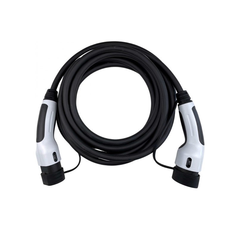 Ladekabel in der Version Typ2 –Type 2 mit 32A / 480V Leistung. 5m Leitungslänge in glatt oder spiral Ausführung. TÜV Rheinland geprüfte Ladekabel nach EN 50620:2017