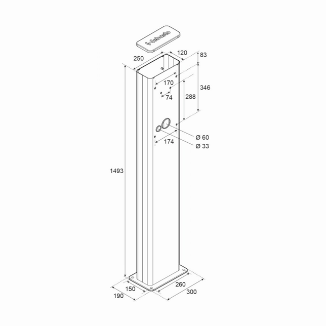 - Abmessungen (BxTxH): 300 x 190 x 1493 mm