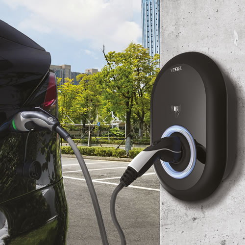 - Die Vestel Wallbox kann im Innen- sowie Außenbereich (IP54) montiert werden und verfügt über eine hohe Stoßfestigkeitsklasse (IK10).